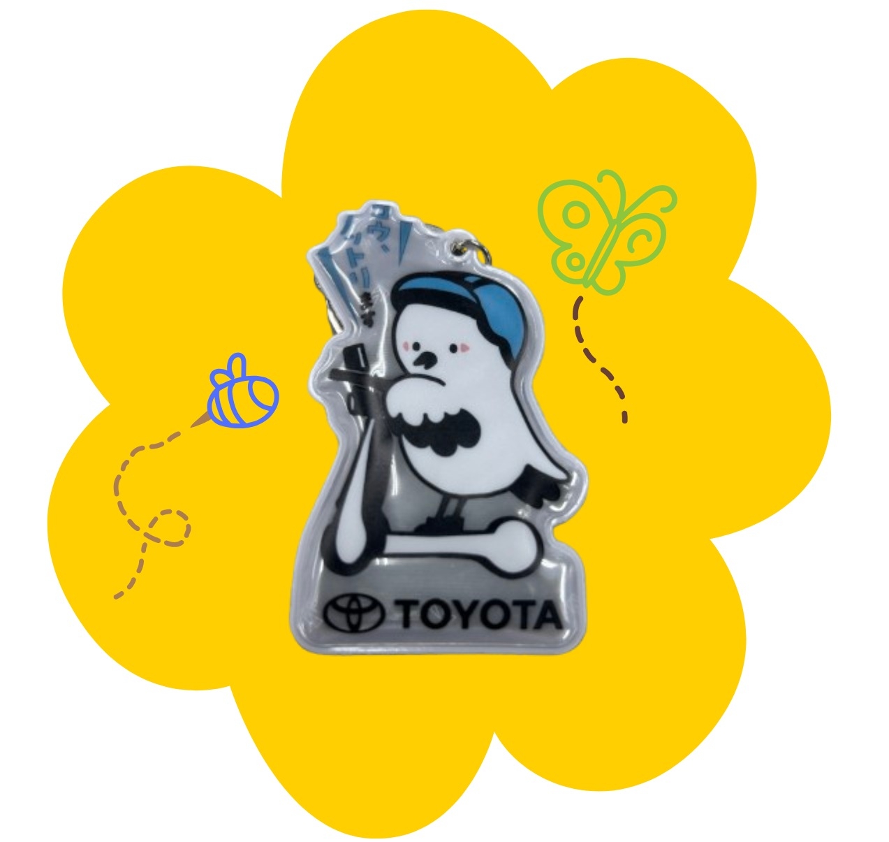 反射材がついたコウノトリキーホルダーをプレゼント
