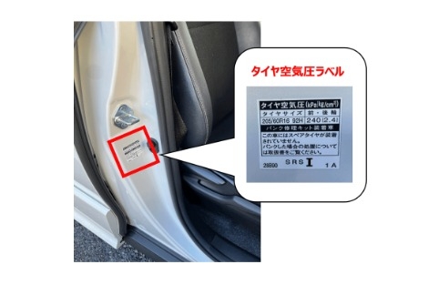 タイヤの空気圧基準値がかかれています!!