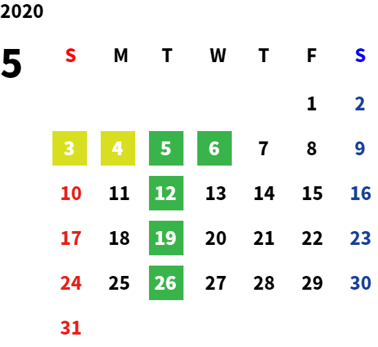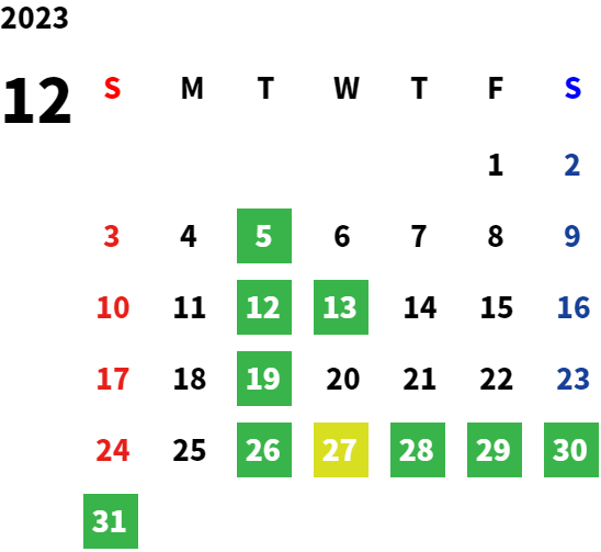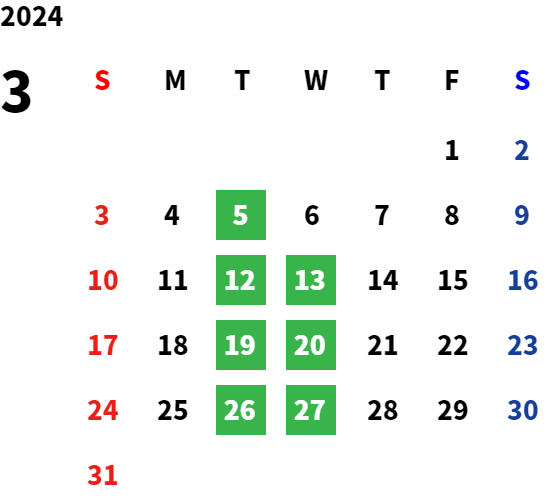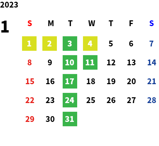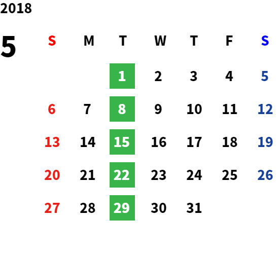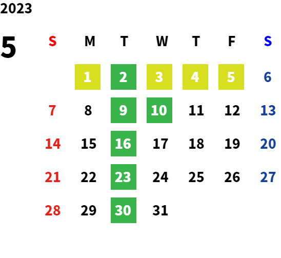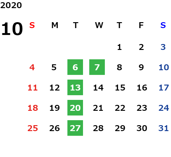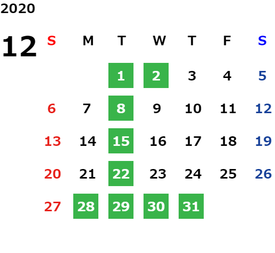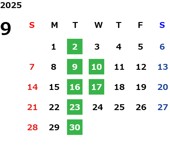 毎週火曜日、第2・第3水曜日